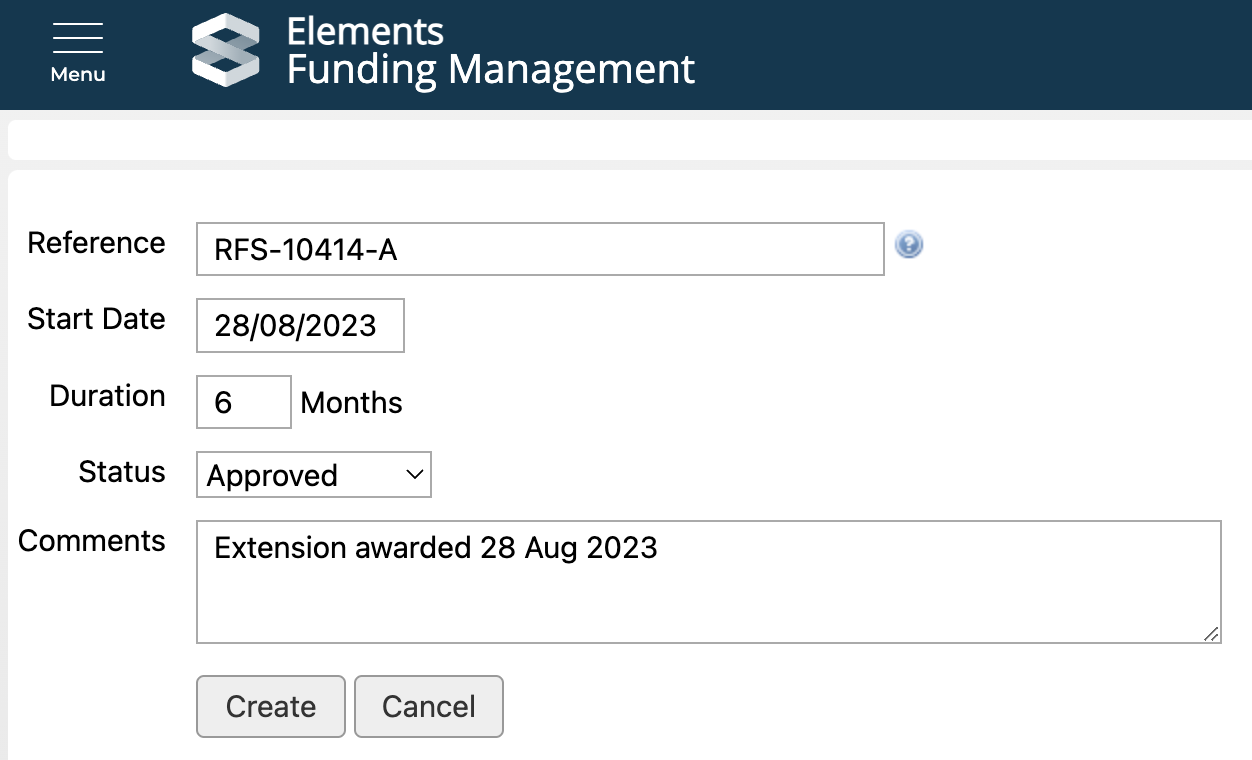 Once you've captured all of the data you wish on this screen, you can select 'Create' to create the new sub-grant and confirm, or 'Cancel' to abandon.