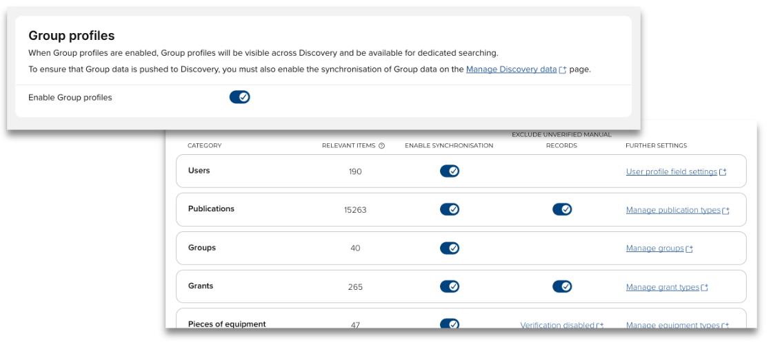 As with other Discovery functionality, you can configure the new Discovery Groups functionality quickly and easily via the Discovery administration pages within Elements. By default, the synchronisation process that sends group data to Discovery is turned off, allowing you to take the time that you need to curate your group data before starting to allow data to be pushed to Discovery.