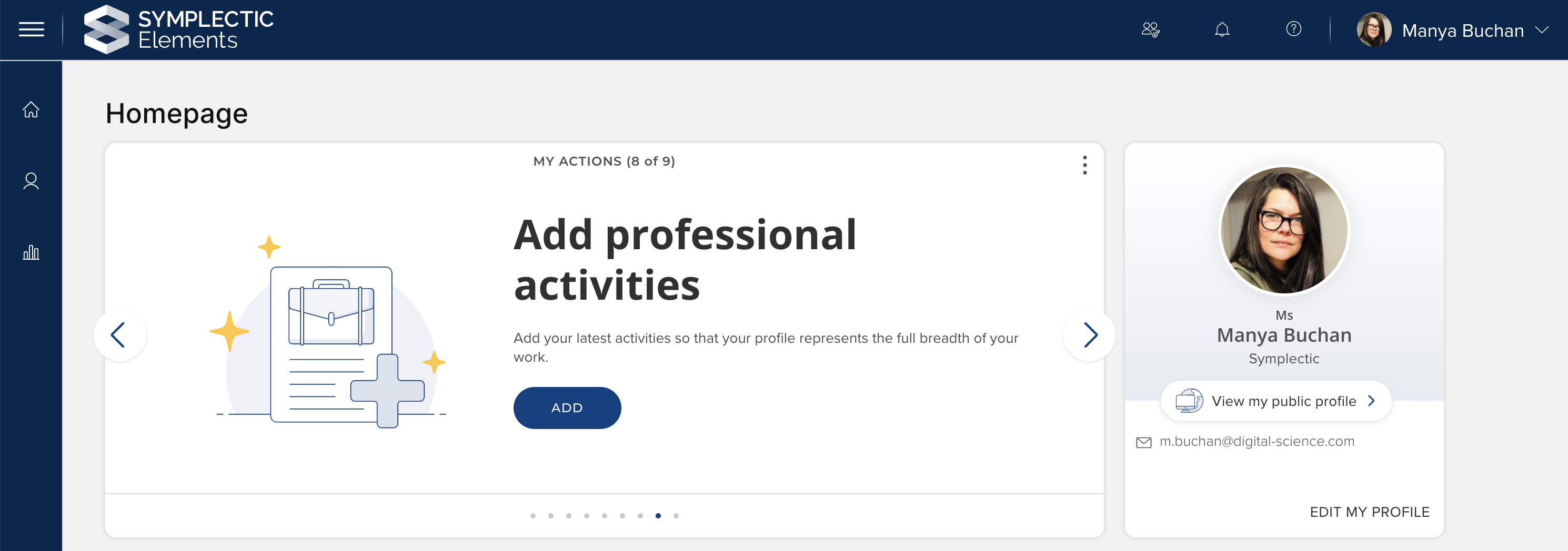 Image: New 'Add Professional activities' Homepage action