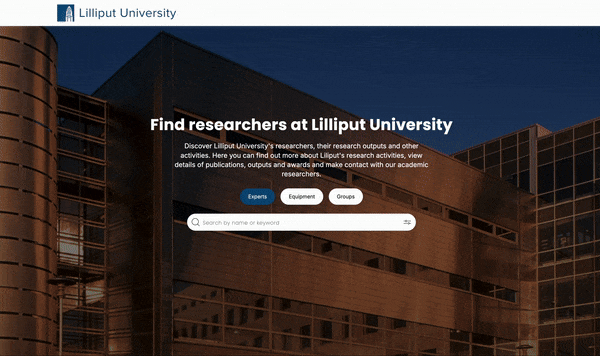 Each organisation can also configure their choice of customisable label-based filters to help visitors find the resources they may be interested in, and these once again can be configured separately for the Experts, Groups, and Equipment search experiences. For example, in the animation above, the Group search features a custom label-based filter for UN Sustainable Development Goals, displaying only those that are specifically relevant to the Groups content.