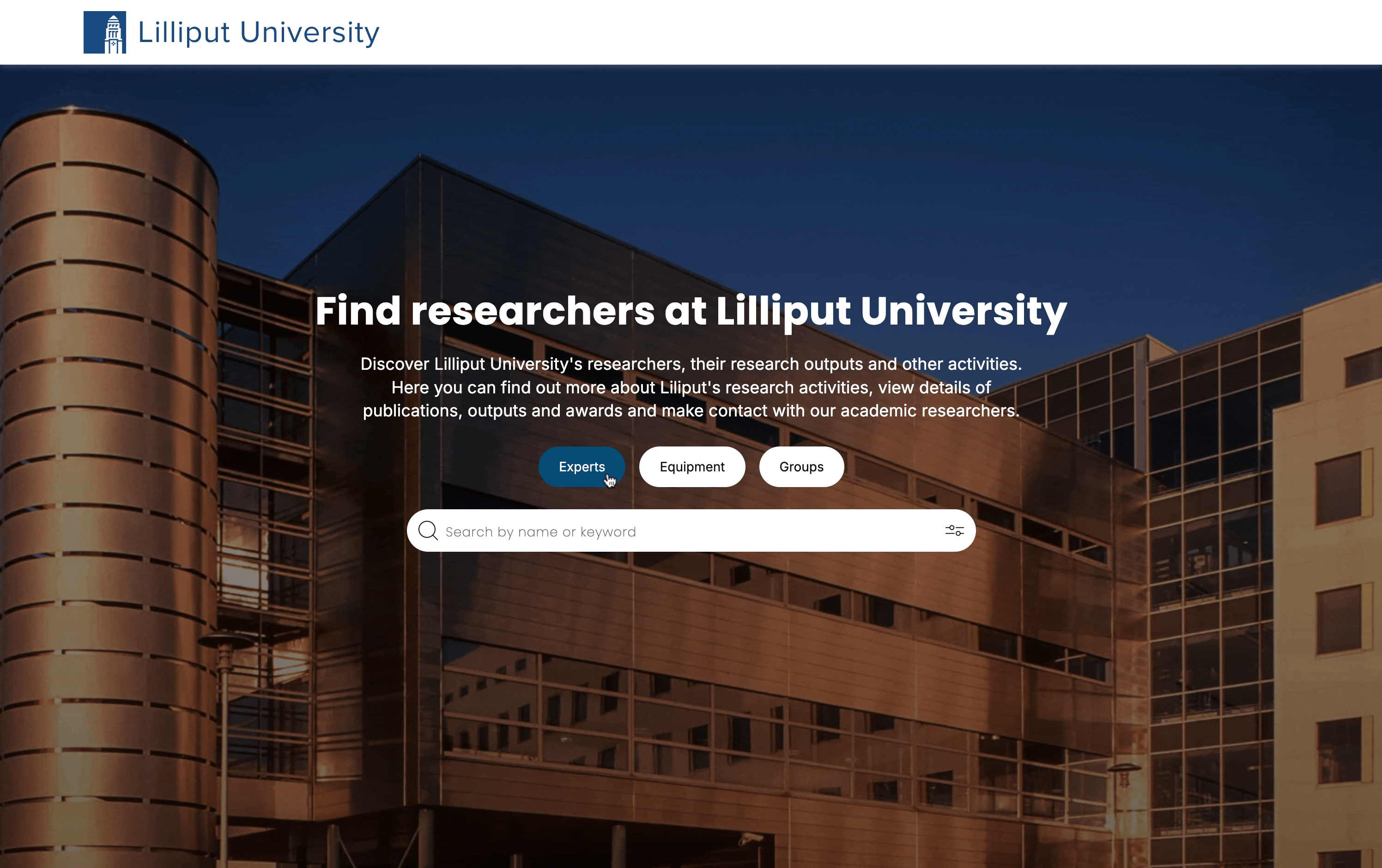 Each group you wish to include in your Discovery site will have a dedicated group profile page, full of information describing the group and providing links to related experts, works and other sites.