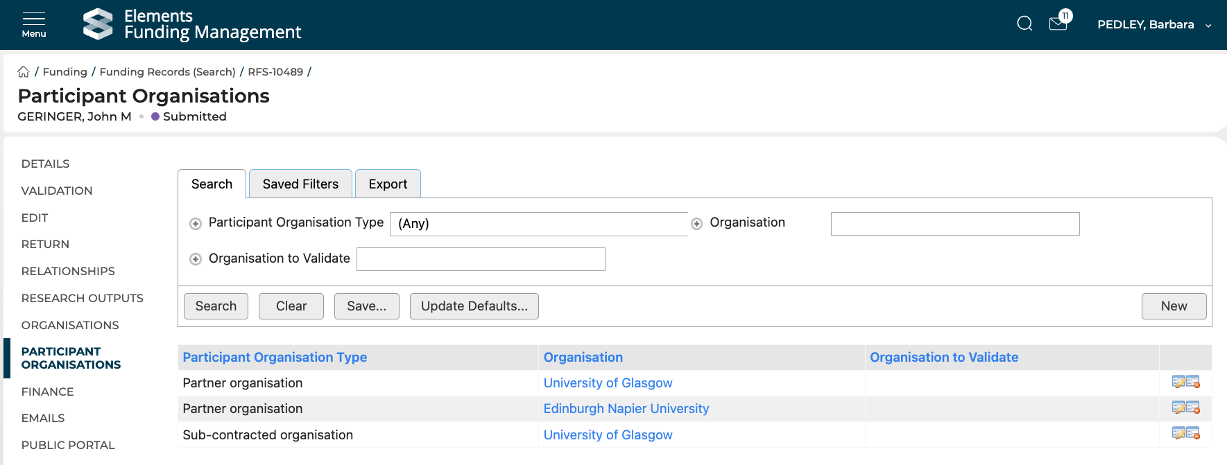 In this release of the Elements Awards Management (Research Funding Solution (RFS)), we are pleased to introduce enhancements to external organisation functionality, ensuring that funding relationships with other organisations are accurately captured.