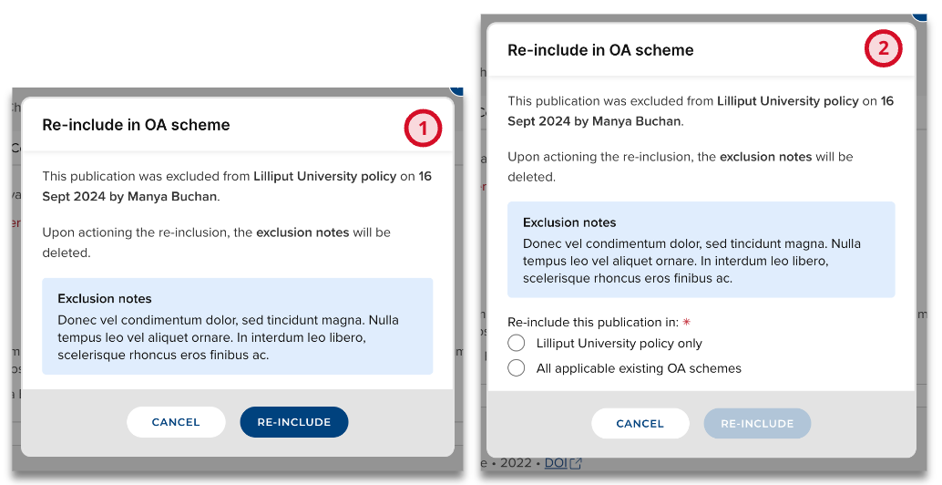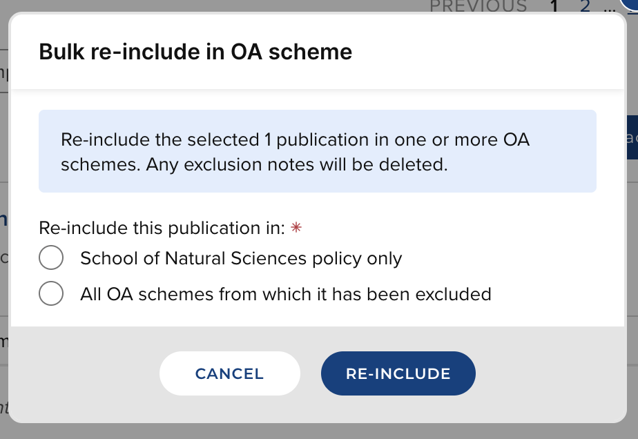 You can choose whether you would like to re-include this publication in this scheme only, or in all OA schemes from which it has been excluded