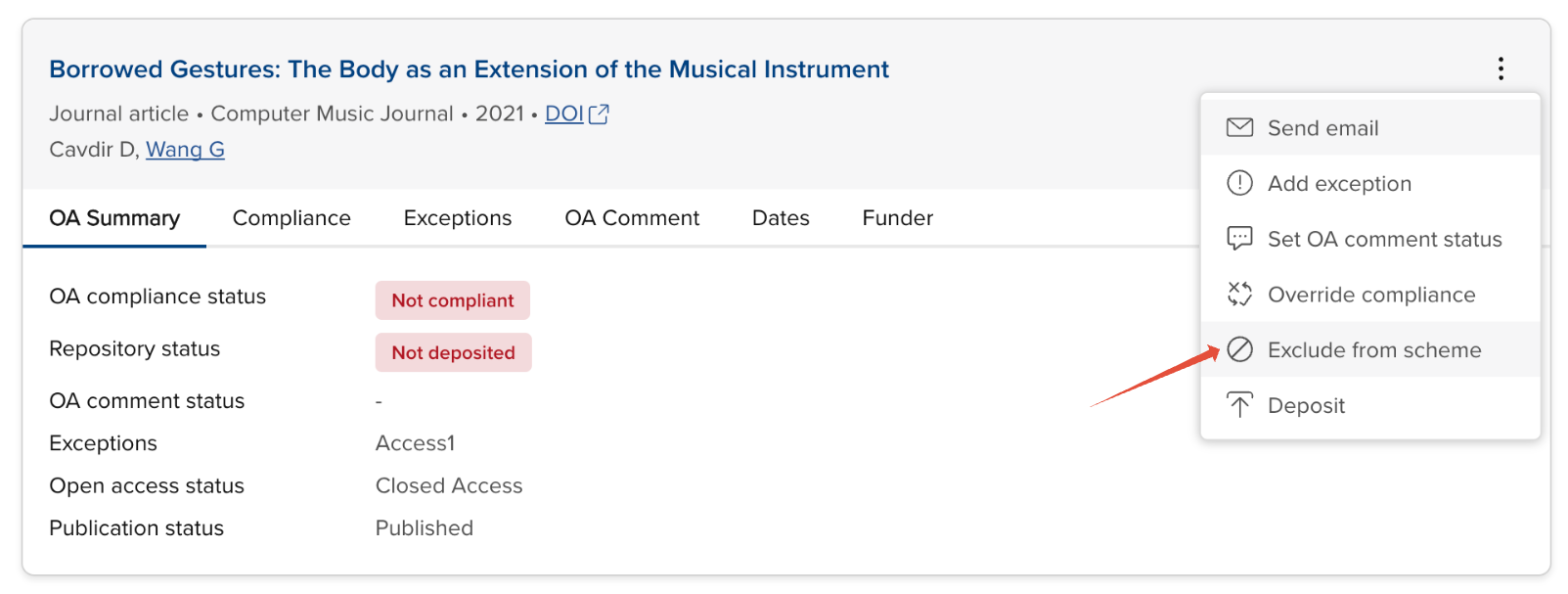 Image: Exclude a publication from a OA scheme