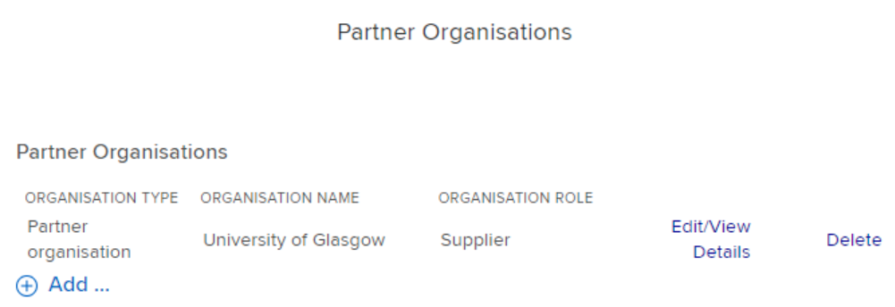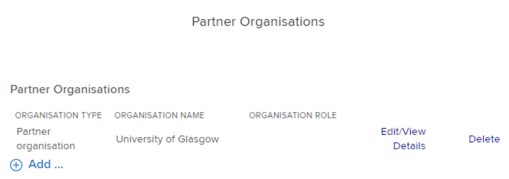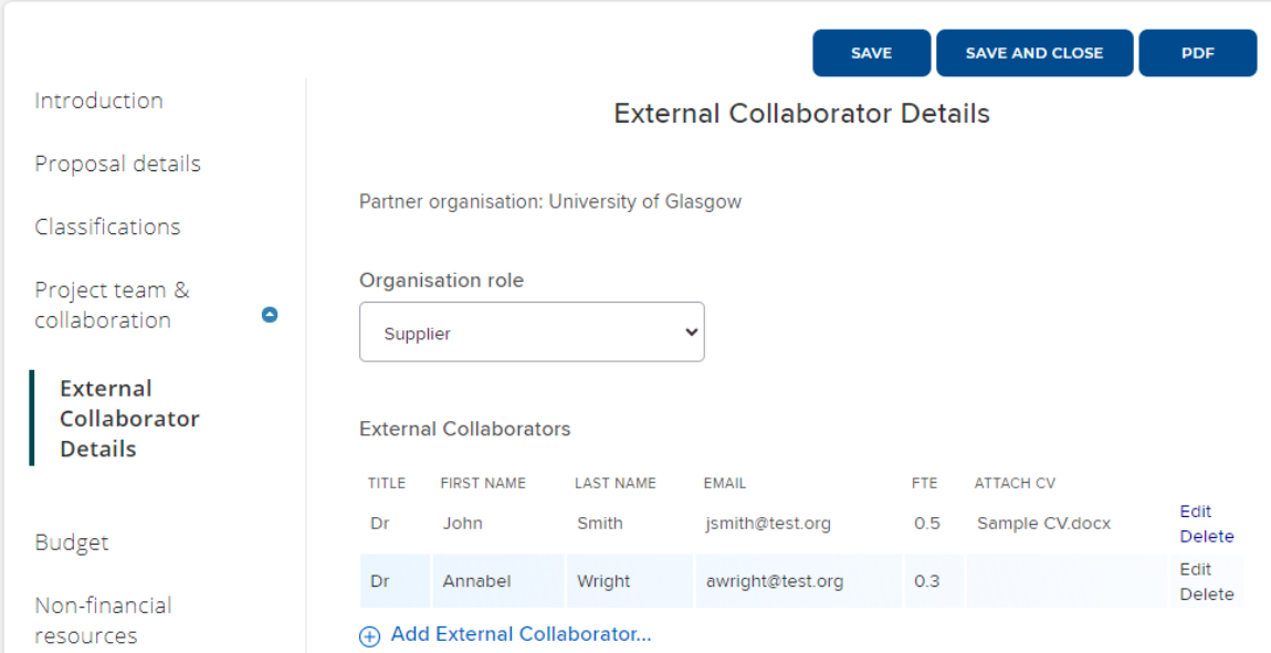 Prior to v6.20, the solution for capturing external collaborator data was to configure a Grid control in the proposal form with an Institution External Source Control configured to save as either partner or sub-contracted organisation, and additional fields to capture the associated metadata