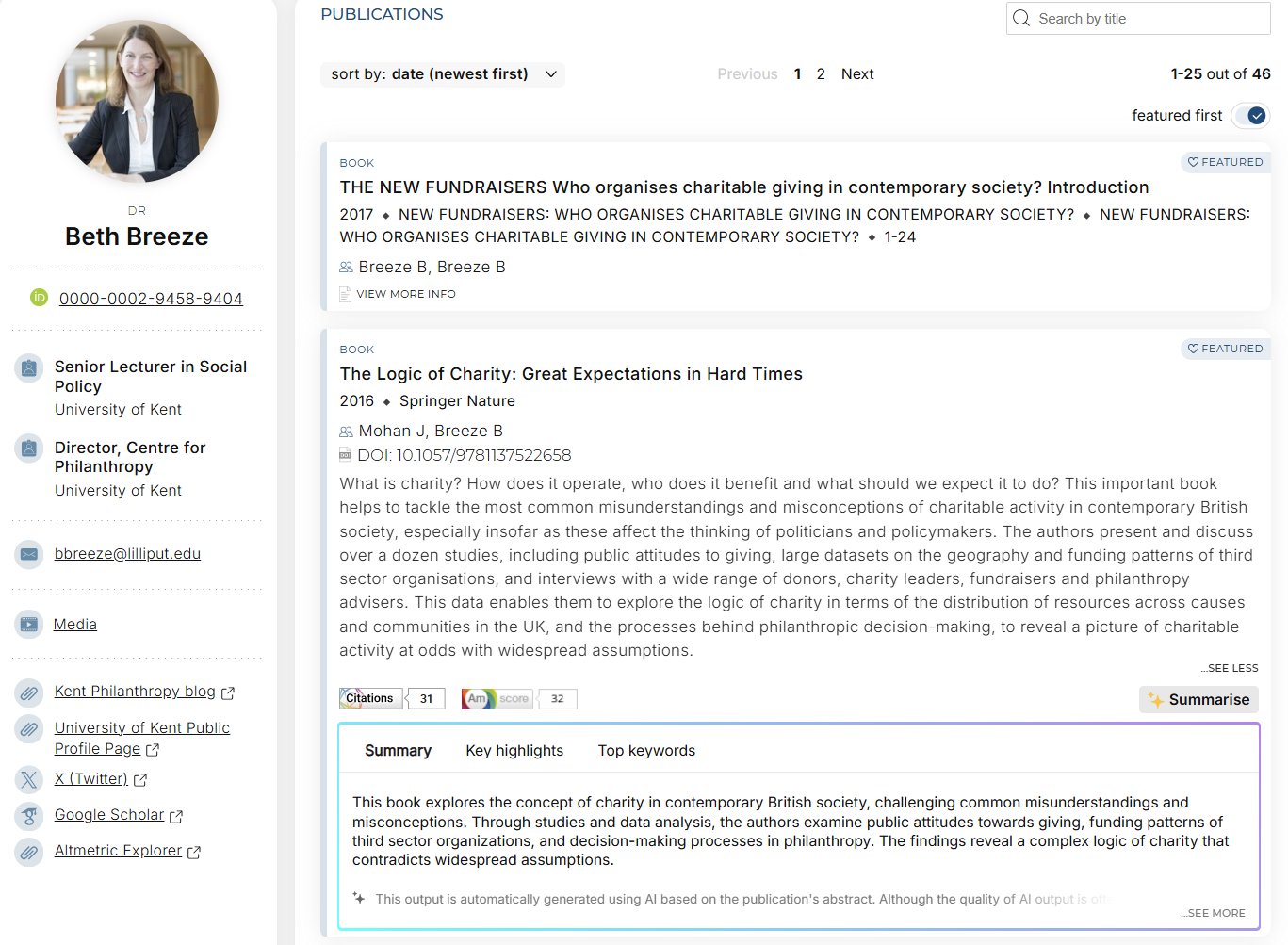 New AI-powered publication summarisation (opt-in): A new AI-driven feature will generate on-demand, easy-to-digest summaries, key highlights, and keywords to help visitors and non-specialists understand research at a glance.