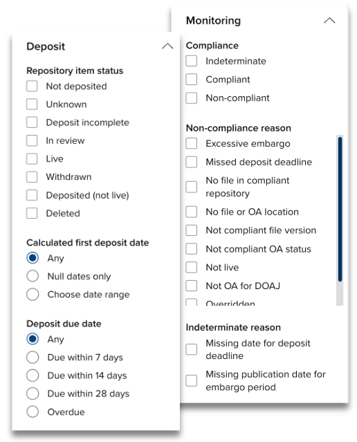 As part of our ongoing enhancements to the Open Access Monitor, we’re introducing expanded compliance criteria, new scope filtering options, and enhanced reporting capabilities which will help you monitor and manage Open Access policies with greater flexibility and control.