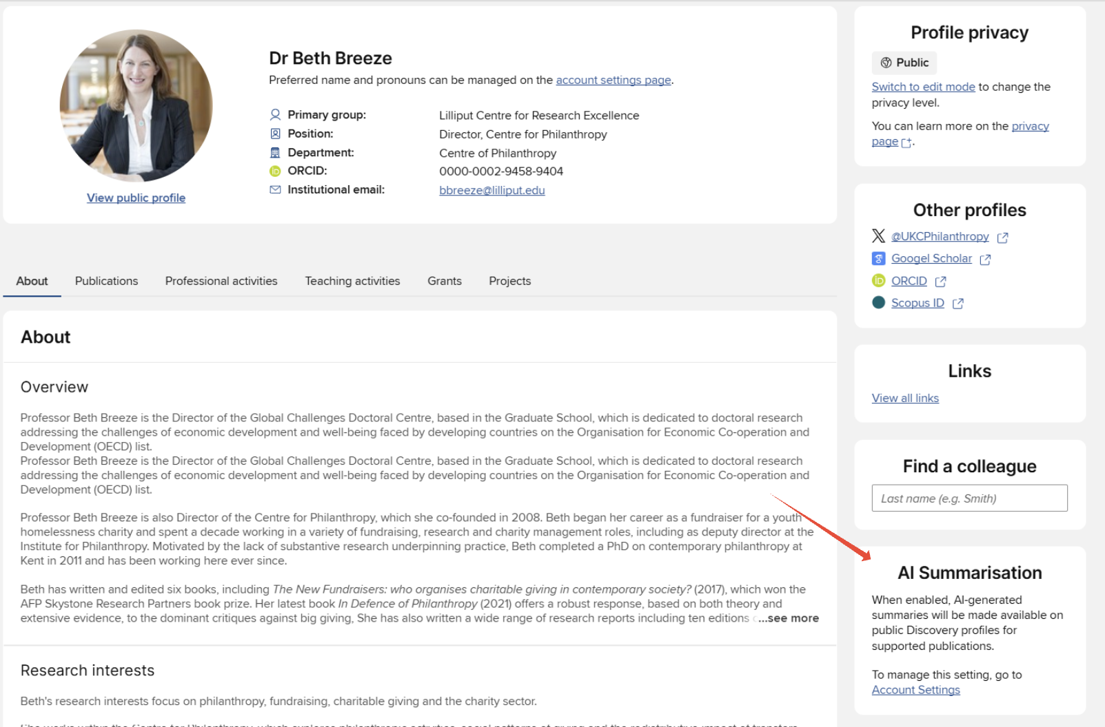 Institutions must opt in to enable AI-driven summarisation across Public Profiles.