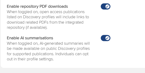 For those using the Discovery Module, we’ve made exciting improvements to public profiles to improve visibility of research, including the display of abstracts and the ability to auto-generate AI-powered publication summarisations. This optional tool provides clear, digestible summaries and key highlights.
