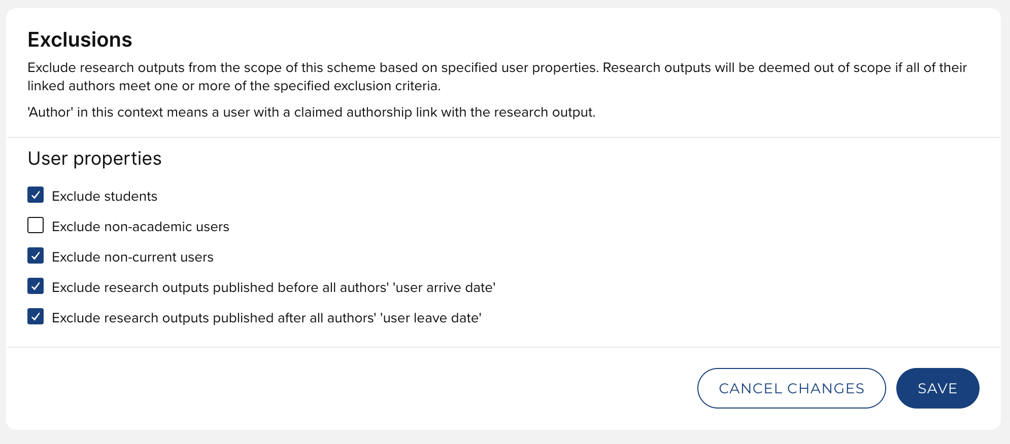 Upon upgrade, for existing OA schemes, these settings are migrated such that non-academic users are excluded and student users are included by default (reflecting existing behaviour).