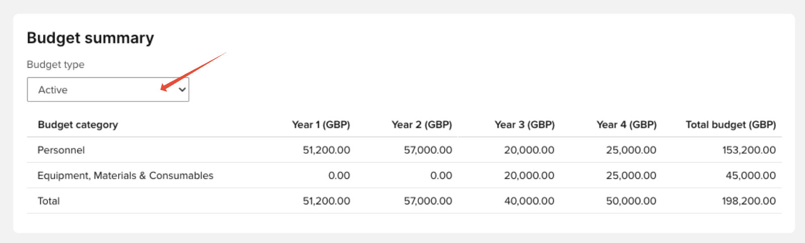 The budget summary block is only visible to the following participant roles: