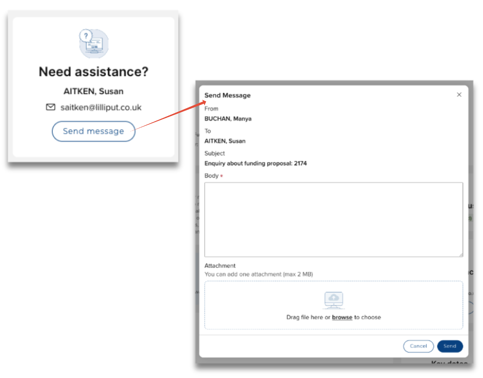 The 'Need assistance' tile has been enhanced to include an email function that opens an email editor directly in Elements. Any email sent in this way will be sent to both the email inbox in the Management Console, and directly to the recipient's own email client inbox.
