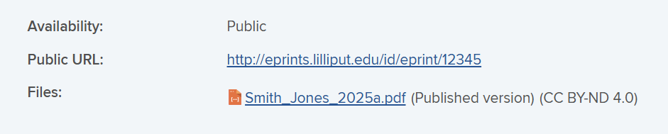Image: File metadata harvested from a connected repository, including file-level reuse licenceThe effect of this, and whether your institution needs to take action, is dependent on your repository platform and current configuration.