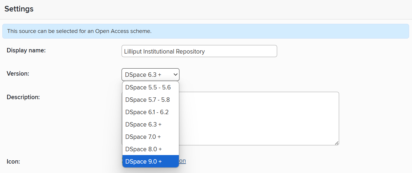 Image: The DSpace 9 configuration option in the DSpace data source settings