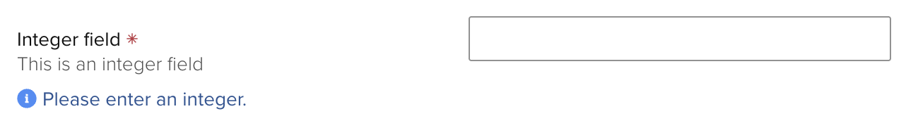 Integer | Integer value input (use if you don't want to support decimal or min / max values). | |