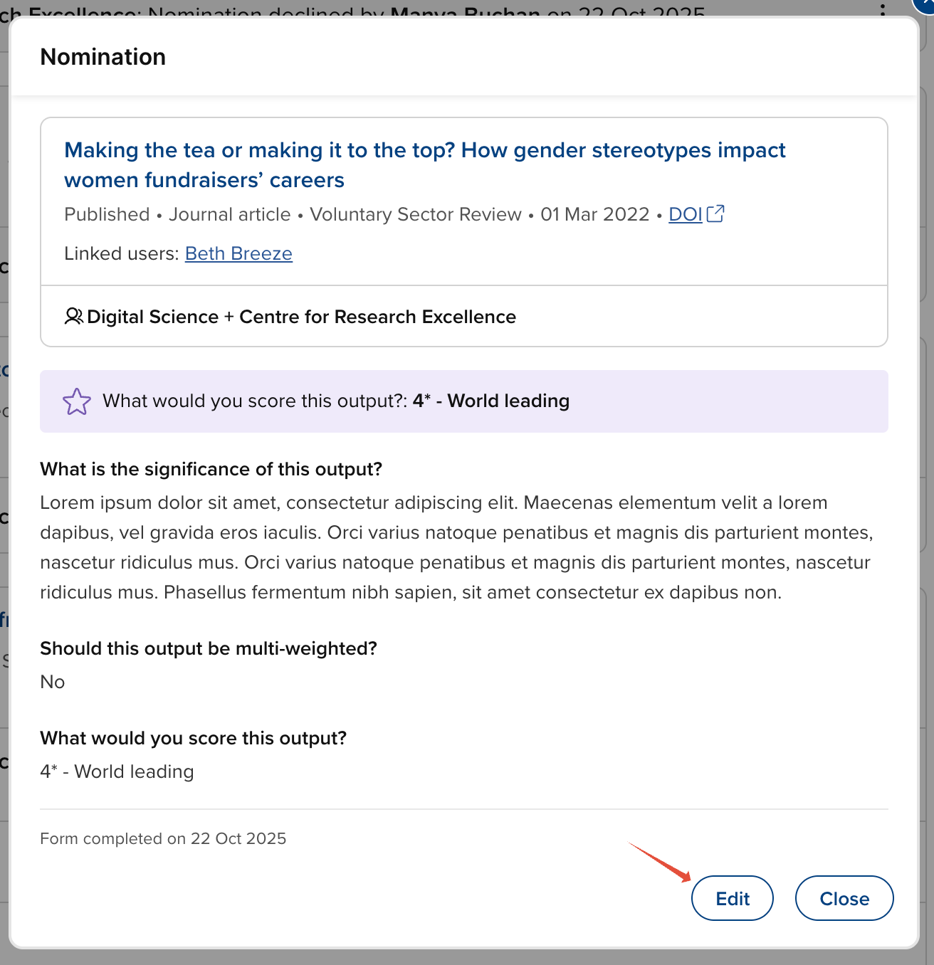 View / edit nomination form