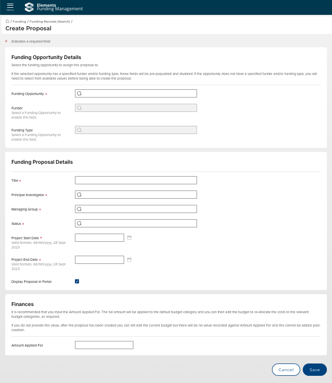 Functionality to enable Management Console users to create a proposal directly in the Console, at the desired pre-award status.