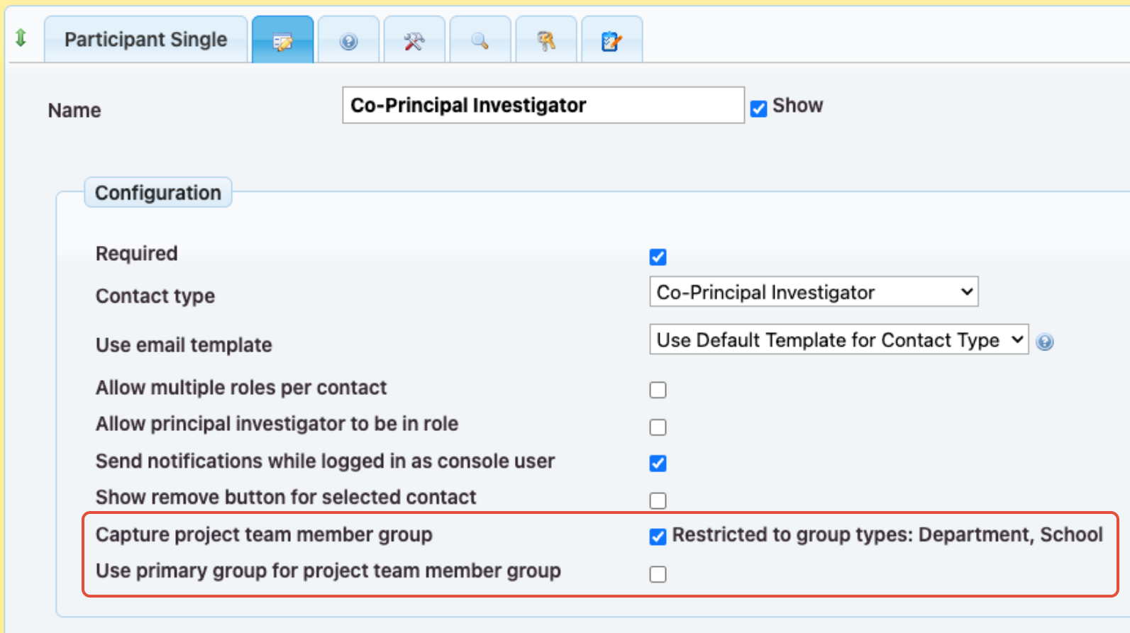 Principal Investigator : Configuring the Principal Investigator Group control