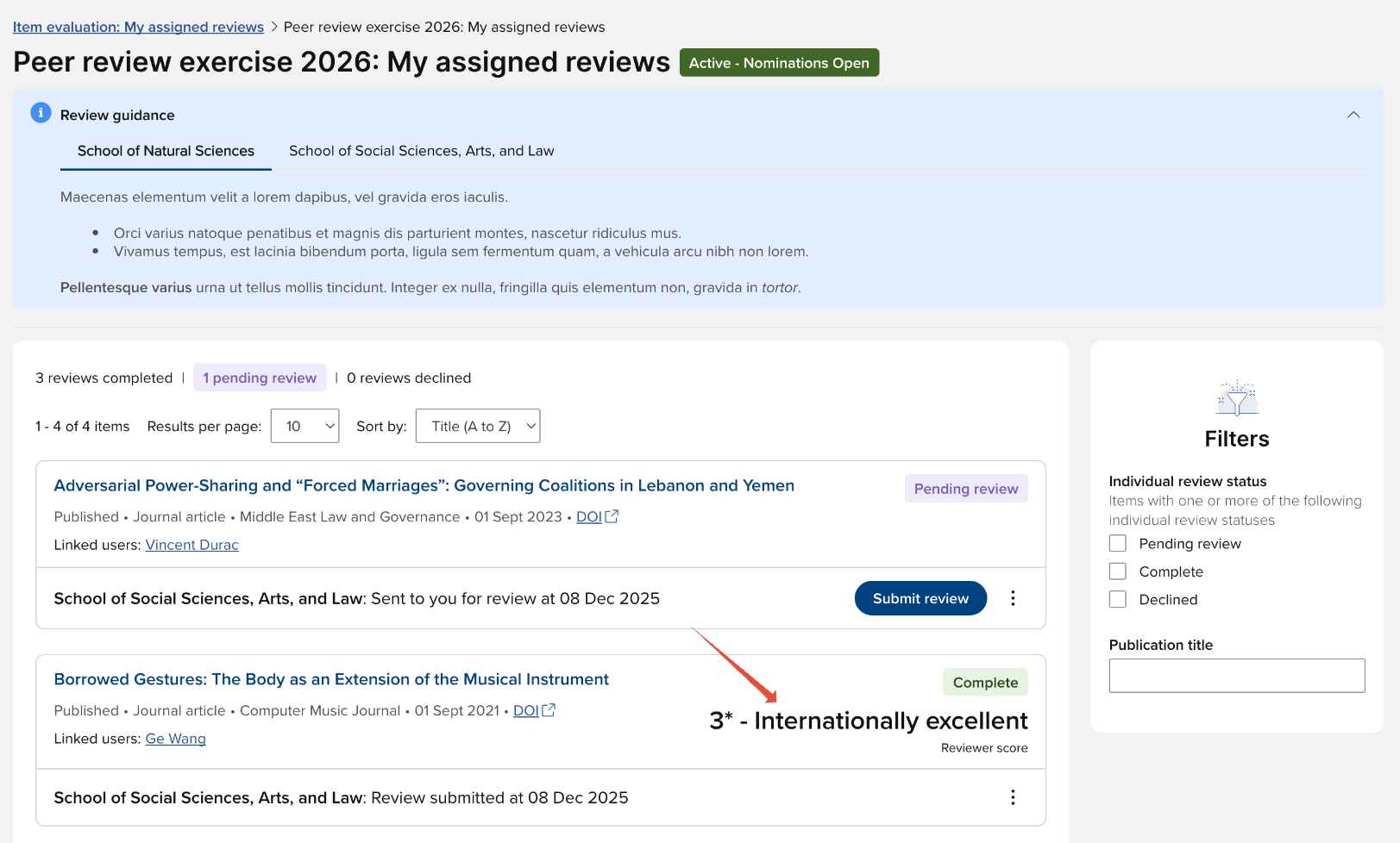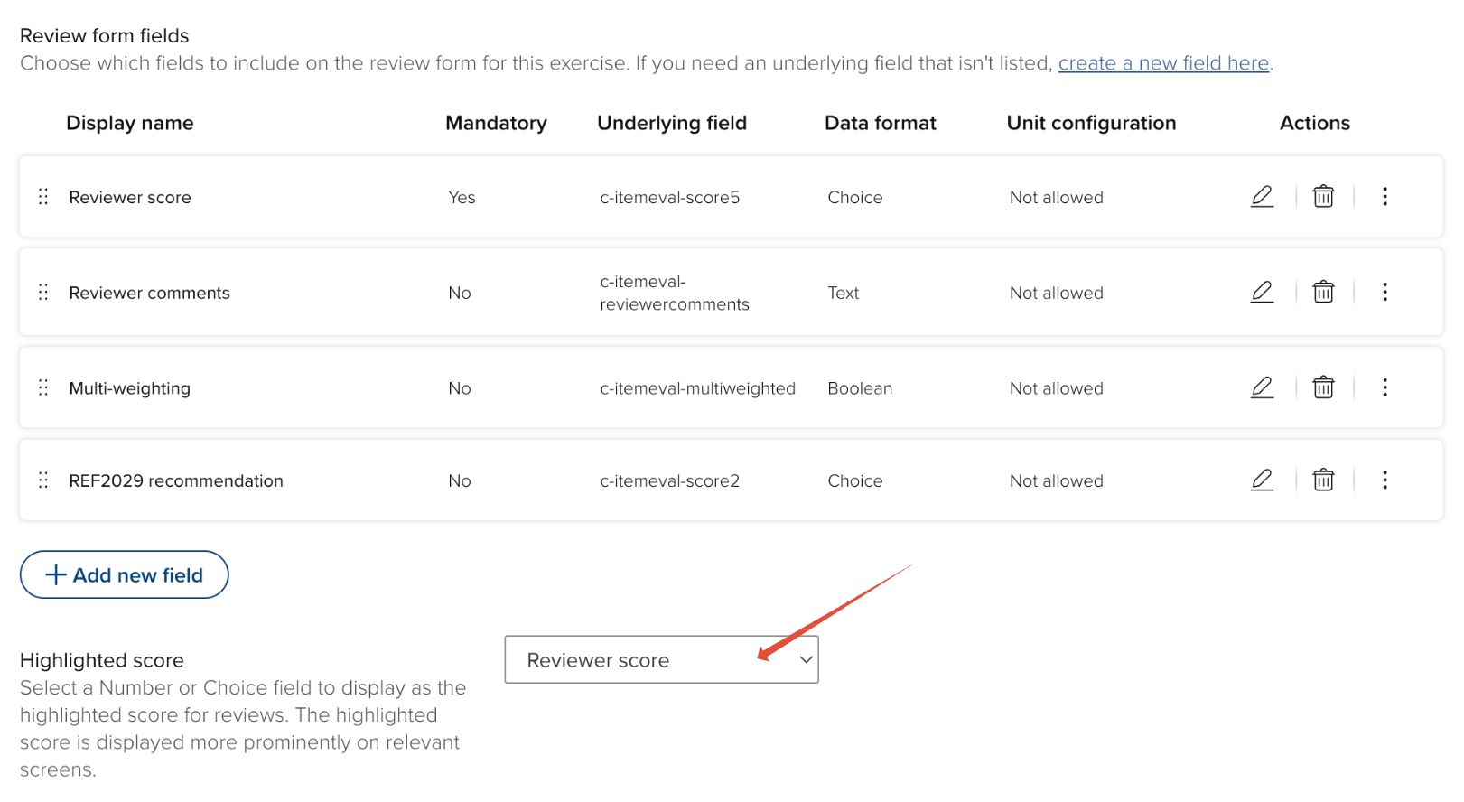 As each form (nomination, review, outcome) in the Item evaluation module enables any number of scores to be captured, you have the ability to identify a ‘highlighted score’ per form (from v7.3). Highlighted scores are more prominently displayed on key screens, making outcomes easier to interpret.