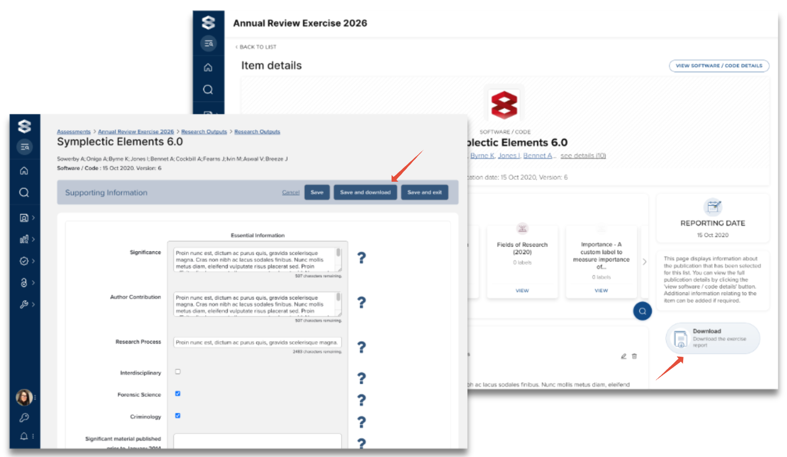 Image: Ability to download the exercise now available on the Item details and Supporting information form pages