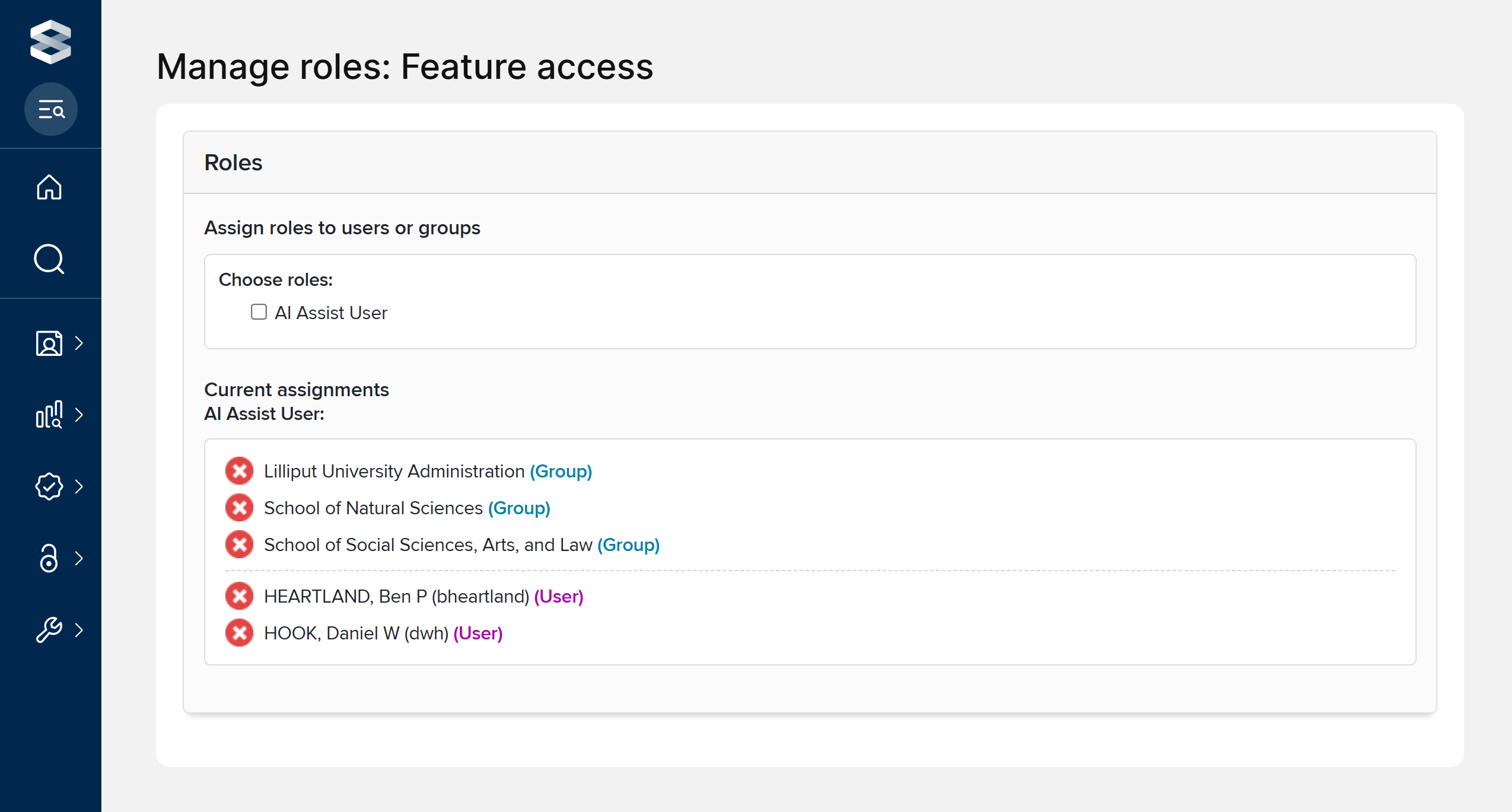 This granular control over who can use AI assisted data entry will be managed via a new "Manage feature access" admin page. This will work in the same way as the familiar admin pages for managing roles and module access.