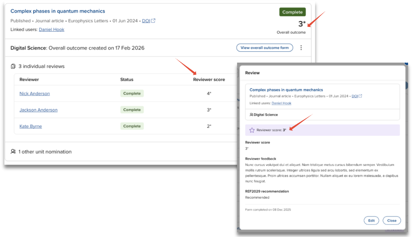 As each form (nomination, review, outcome) in the Item evaluation module enables any number of scores to be captured, we have introduced the ability to identify a ‘highlighted score’ per form. Highlighted scores are more prominently displayed on key screens, making outcomes easier to interpret.