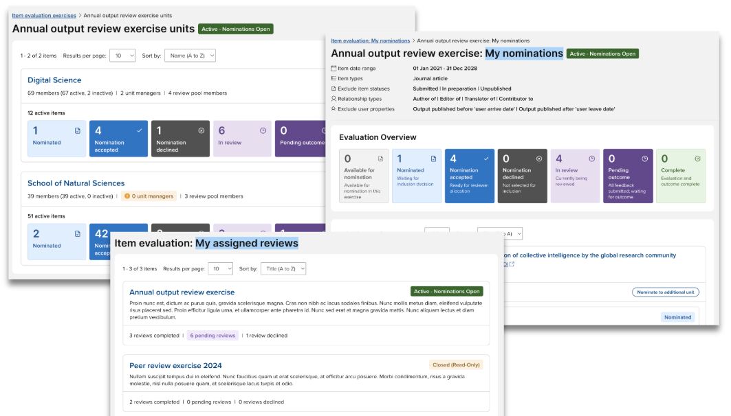 In this release, we have expanded the functionality available in the Item evaluation module to support more scalable and insight-driven review processes. These enhancements introduce comprehensive reporting capabilities, deeper unit-level customisation, and a suite of bulk management tools designed to reduce manual processes and provide real-time clarity on exercise progress.